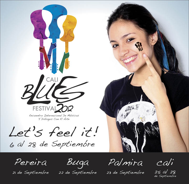 Entre el 6 y 28 de septiembre   Cali, Pereira, Buga y Palmira reciben el CALI BLUES FESTIVAL 2012: “Encuentro Internacional de Música y Diálogo con el Arte” gracias a la participación de empresas, instituciones culturales, gobiernos internacionales, nacionales y municipales. Un evento que reúne  diferentes expresiones musicales, las cuales evocan la exploración de sus raíces a través de referentes contemporáneos en la escena musical nacional e internacional del Blues y sus géneros relacionados como el  Jazz, Góspel, R&B, Rock&Roll entre otros.