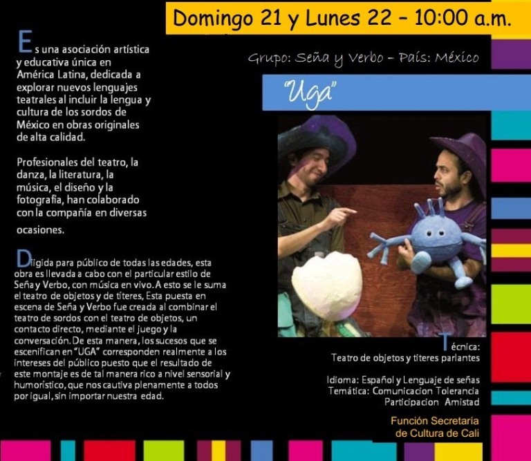 A partir de las 10:00 a.m. se presentará un espectáculo teatral dirigido a los discapacitados auditivos de Cali y el Valle del Cauca en la sala Beethoven de Bellas Artes.