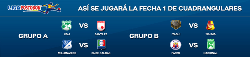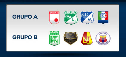 Grupo A: Cali (1), Once Caldas (2), Santa Fe (3) y Millonarios (4)