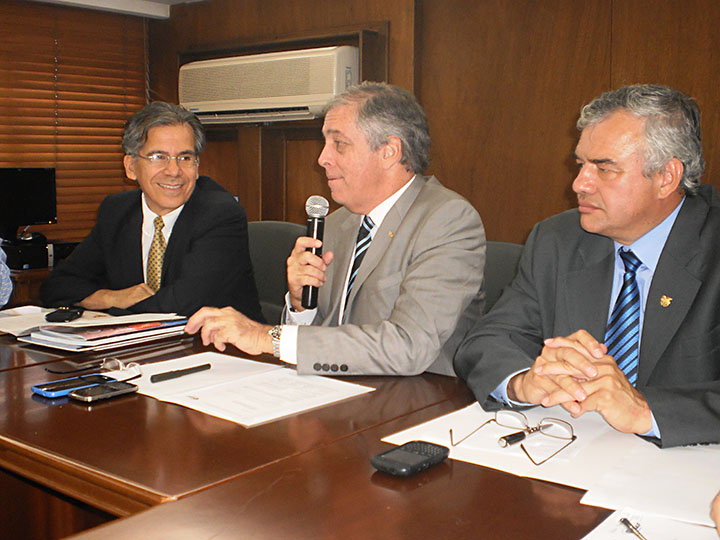 De izquierda a derecha Ramiro Varela Marmolejo, Presidente Comité Organizador. Andrés Botero Director de COLDEPORTES y Ciro Solano del Comité Olímpico Colombiano |