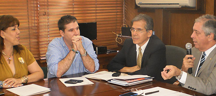 Clara Luz Roldan, secretaria de Deportes de Cali, Juan Esteban Ángel, Asistente Privado Alcalde Rodrigo Guerrero. Ramiro Varela, Presidente Federación Colombiana de Atletismo y Andrés Botero, Director de COLDEPORTES en instalación Comité Organizador Mundial Cali 2015.