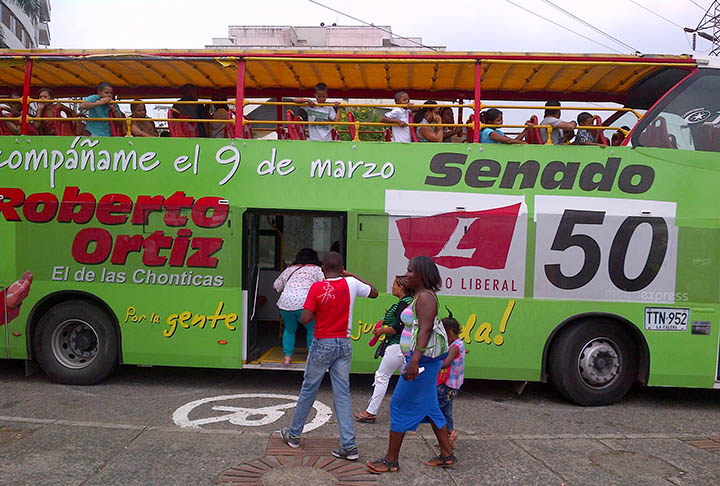 Los buses de dos pisos que utiliza el candidato Roberto Ortiz y en los cuáles transporta en cada uno 89 personas desde municipios como Puerto Tejada o Villa Rica, a un tour por Cali, son un evidente “fuera de lugar”. Esos buses tienen un objetivo turístico y no proselitista, además se convierten en una propaganda móvil que, aunque no está reglamentada, si contaminan visualmente a quienes se encuentran con estas “moles” en su camino.