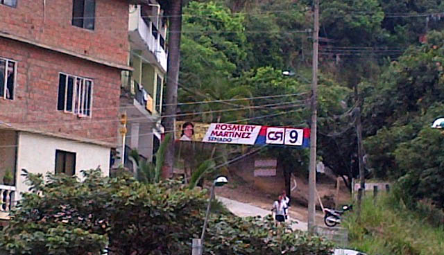 En la subida al cerro de las Tres Cruces, la candidata al Senado e CAMBIO Radical Rosmery Martínez, instaló este pasacalle estratégicamente para que los cientos de personas que suban a este sitio a hacer ejercicio s ello encuentren.