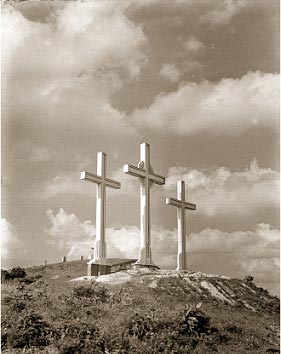 El de Las Tres Cruces es un cerro imponente. Sus formas, colores, tonos, texturas y sombras son impactantes. Acompañado por el mas grande de Cristo Rey y por la gran cordillera atrás en la distancia, conforma un paisaje maravilloso cuando se ven por momentos los Farallones al final de este planísimo valle viniendo de la otra banda del valle.