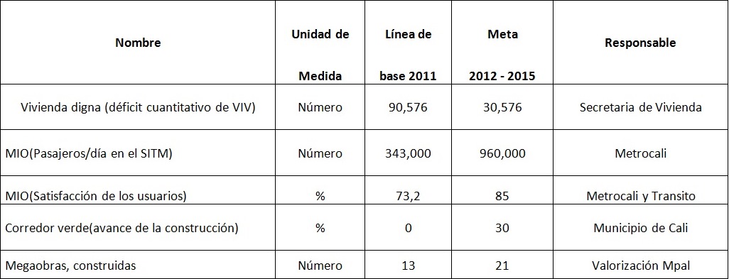 Incumplimiento metas plan de desarrollo de Cali por sectores