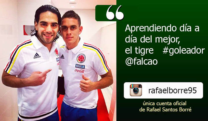 Muy orgulloso se vio al delantero verdiblanco Santos Borré posando junto a Radamel Falcao García en la convocatoria de la selección Colombia. Ellos tienen muchas cosas en común, pues son  costeños, delanteros con olfato y están siendo protagonistas del relevo generación del equipo dirigido por José Pekerman. Nos dicen desde Bahréin que Falcao ya se lo recomendó al Mónaco y que a Santos, es más bien poco el tiempo que le queda en el Deportivo Cali, pues además necesitan un trasferencia millonaria para junio.