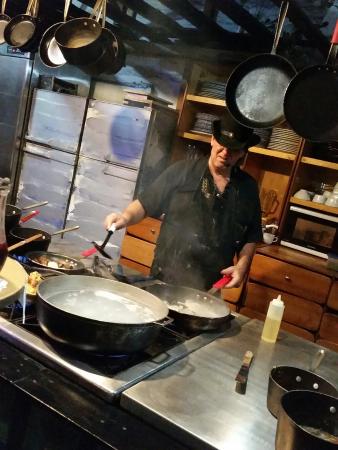 Un chef con su Teatro Mágico del Sabor en el que hace lo que más la gusta, cocinar y trovar.