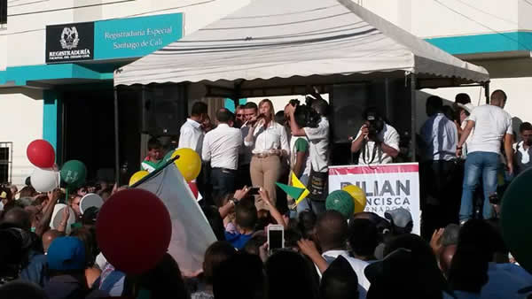 La mona va sola , hay va sola, va sola, Dilian Francisca Toro llego con todo y tarima a la registraduria.