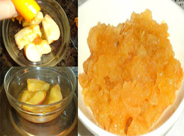 Cortar las manzanas en trocitos agregarle el jugo de la mandarina e incorporar la rama de canela y la miel.